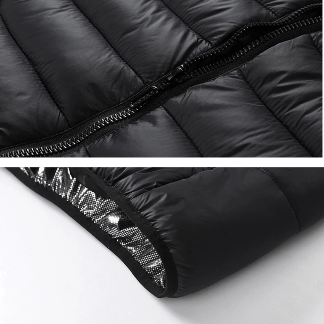 Affronta il freddo con sicurezza e stile con il piumino riscaldato Axton, progettato per gli uomini che esigono calore senza rinunciare all'eleganza. Con il suo design elegante e minimalista e l'imbottitura leggera, questo piumino offre un comfort e una protezione eccezionali anche nelle condizioni invernali più rigide. Il discreto pulsante del sistema di riscaldamento sul petto consente di regolare facilmente i livelli di calore, mantenendoti al caldo ovunque ti porti la giornata. Perfetta per gli spostamenti urbani o le avventure all'aria aperta, Axton combina la tecnologia moderna con un design senza tempo per offrire il massimo indispensabile per l'inverno.